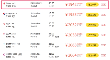 从行程看,北京至昆明出发时查询的往返机票价格最低为1942元。