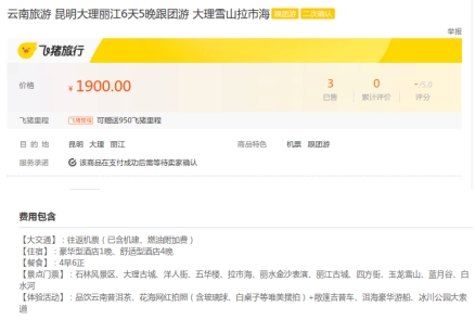 该旅游产品广告链接:云南旅游 昆明大理丽江6天5晚跟团游 大理雪山拉市海