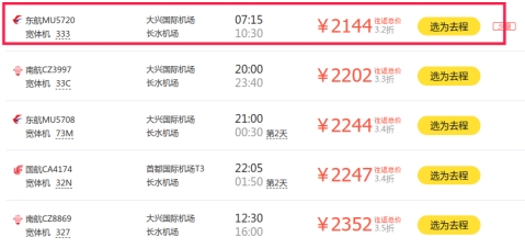 从行程看,北京至昆明出发时查询的往返机票价格最低为2144元。