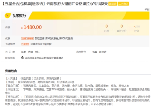 该旅游产品广告链接:【五星全含|包机票|送版纳】云南旅游大理丽江香格里拉/泸沽湖8天
