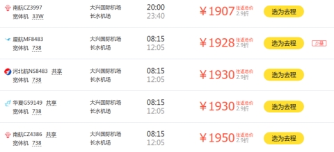 从行程看,北京至昆明出发时查询的往返机票价格最低为1907元。