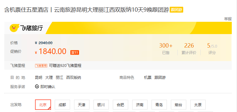 可以看出该旅游产品疑似为