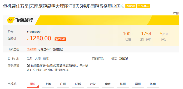 2025年8月15日,云南省文化和旅游厅综合执法监督局联合文旅头条新闻网游舆大数据中心监测到:飞猪旅游网“北京俊程旅游专营店”包机票住五星|云南旅游昆明大理丽江6天5晚跟团游香格里拉国庆