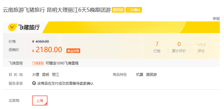 2025年8月21日,云南省文化和旅游厅综合执法监督局联合文旅头条新闻网游舆大数据中心监测到:飞猪旅游网“北京趣哪国旅专营店”云南旅游飞猪旅行 昆明大理丽江6天5晚跟团游