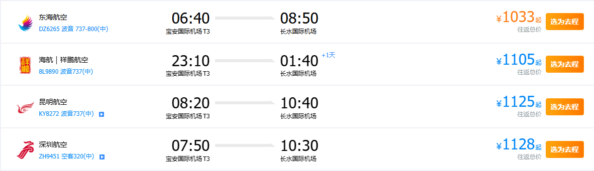 从行程看,从深圳至昆明出发时查询的往返机票价格最低为1033元。