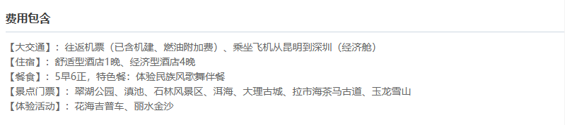 此行程包含往返机票、住宿、餐饮、景区门票、云南省内交通等费用