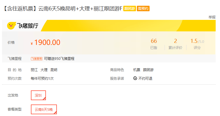 2025年8月23日,云南省文化和旅游厅综合执法监督局联合文旅头条新闻网游舆大数据中心监测到:飞猪旅游网“环球鹰国旅旗舰店”【含往返机票】云南6天5晚昆明+大理+丽江跟团游F