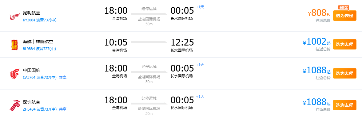 从行程看,从珠海至昆明出发时查询的往返机票价格最低为808元。