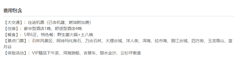 此行程包含往返机票、住宿、餐饮、景区门票、云南省内交通等费用