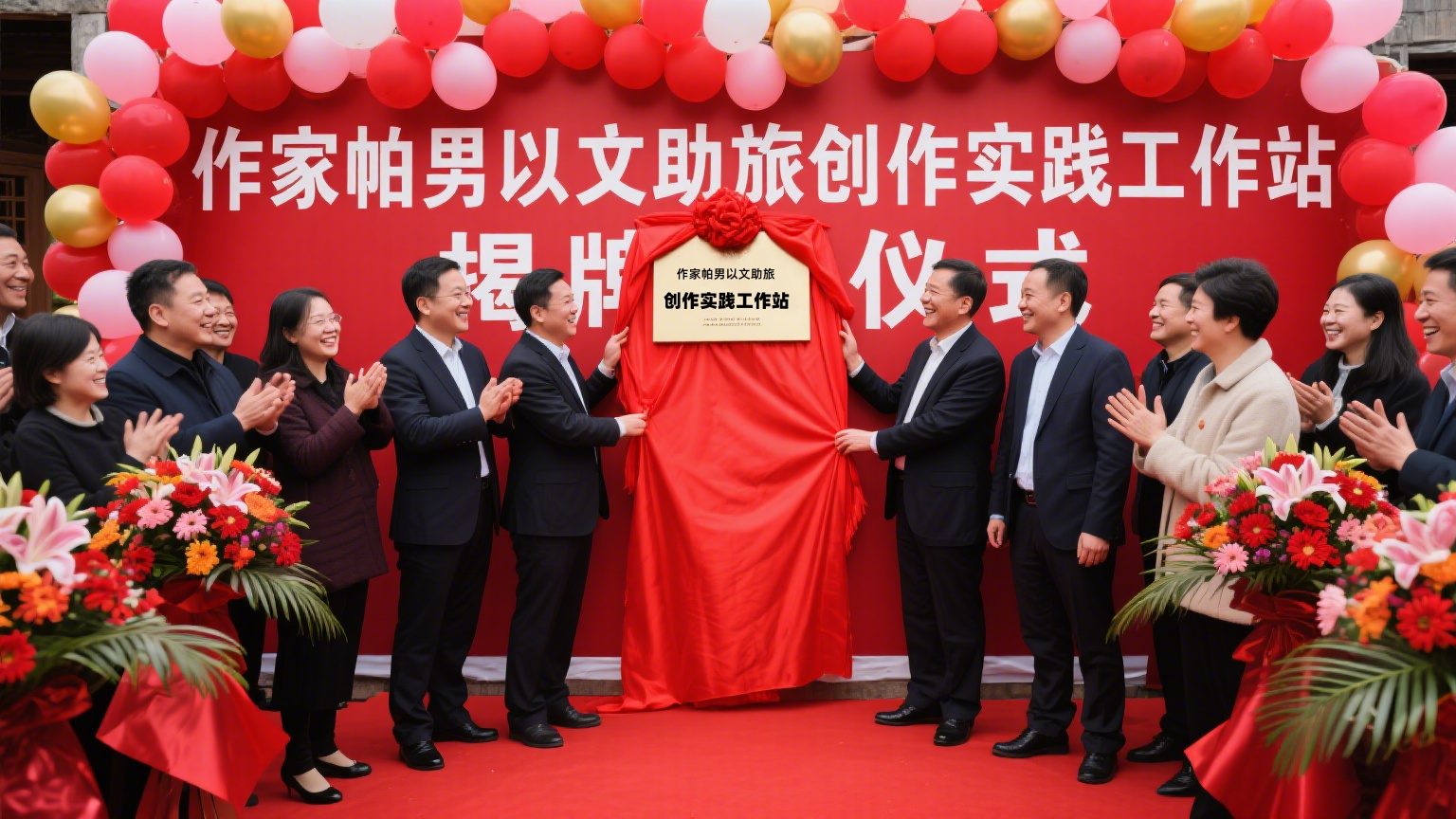 (新近成立的作家帕男以文助旅创作实践工作站揭牌仪式)