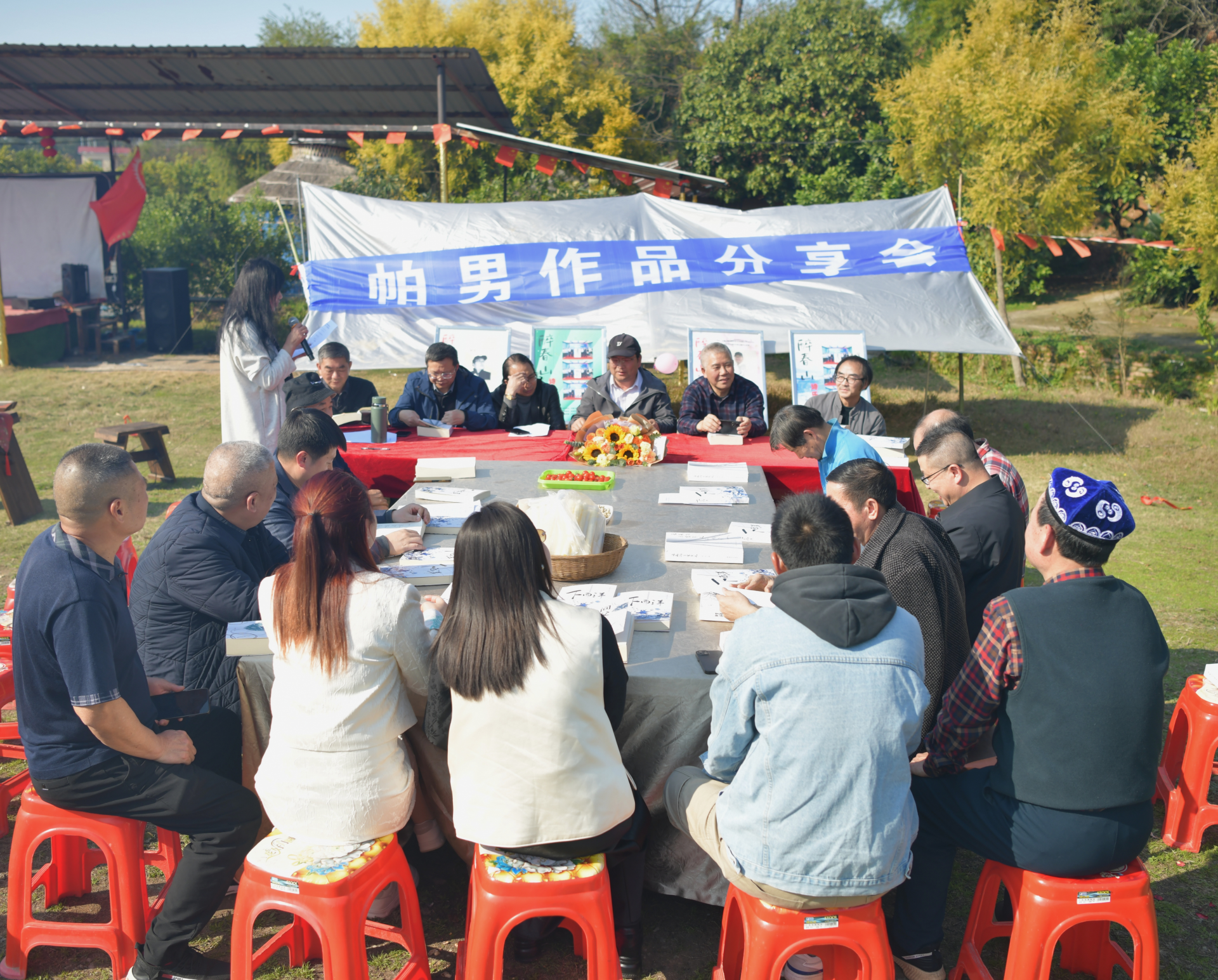(在帕男诗歌小院举办的文学讲座活动)