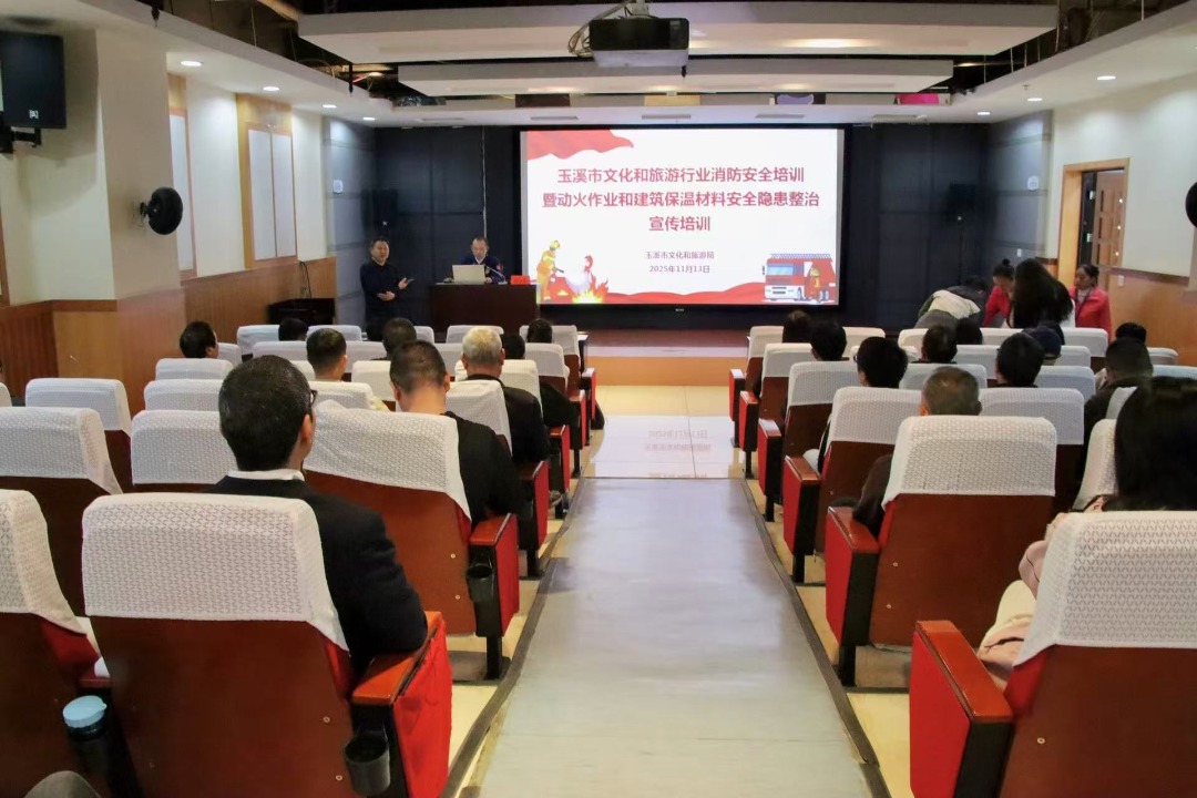 为认真贯彻落实习近平总书记关于安全生产的重要论述,积极响应省、市关于2025年“消防宣传月”活动的安排部署,不断提升文化旅游行业消防安全防范能力,2025年11月13日,玉溪市文化和旅游局在玉溪市图书馆举办消防安全培训暨动火作业和建筑保温材料安全隐患整治宣传培训,红塔区星级旅游饭店、A级旅游景区、“剧本杀”“密室逃脱”等涉旅经营单位安全负责人及局机关、局下属单位60余人参加培训。