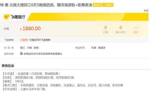 该旅游产品广告链接:特 惠 云南大理丽江6天5晚跟团游。赠洱海游船+歌舞表演