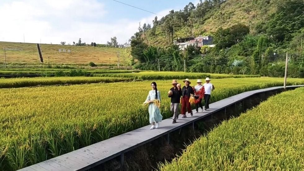 这是“田园画卷”,稻浪翻滚的滇中粮仓田园。