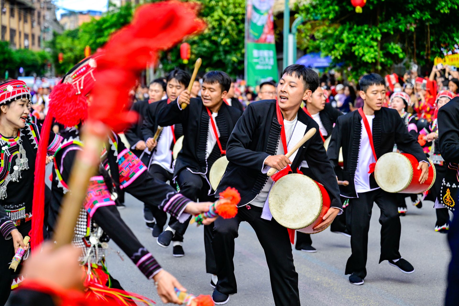 县城里,哈尼族人民以歌声和美食美酒欢迎各族同胞,“多撒”的敬酒歌此起彼伏,这一刻,“中华民族一家亲”的美好与温暖融入了每个人的心中。