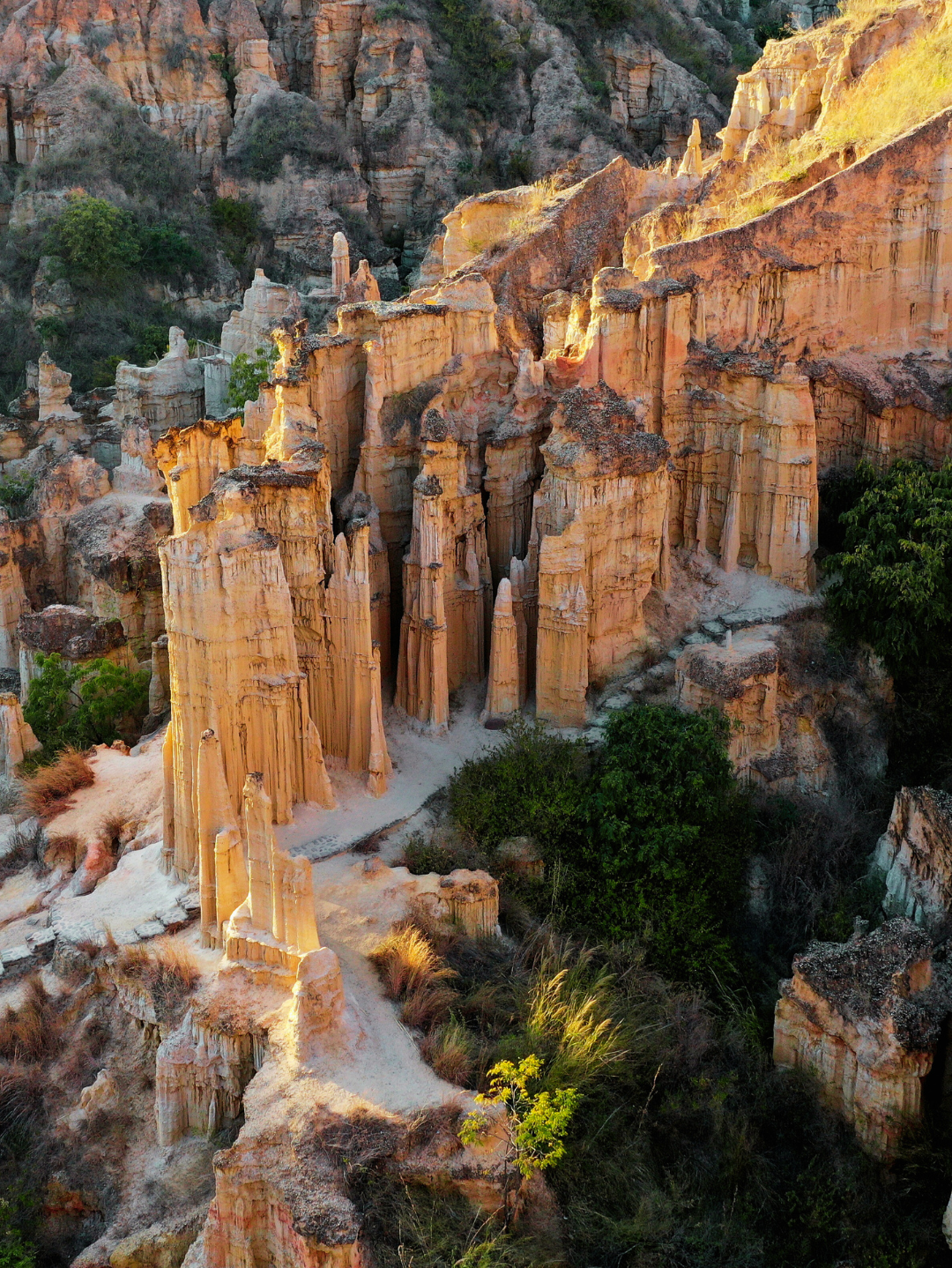 在清晨或傍晚的阳光映衬下,土林更显粗犷与原始,金色的光辉与土黄色的林立柱体,交织出一幅幅令人惊叹的画面,色彩绚丽、姿态万千、恢宏壮阔的土林群,犹如一个“梦幻国度”,吸引你去探秘。