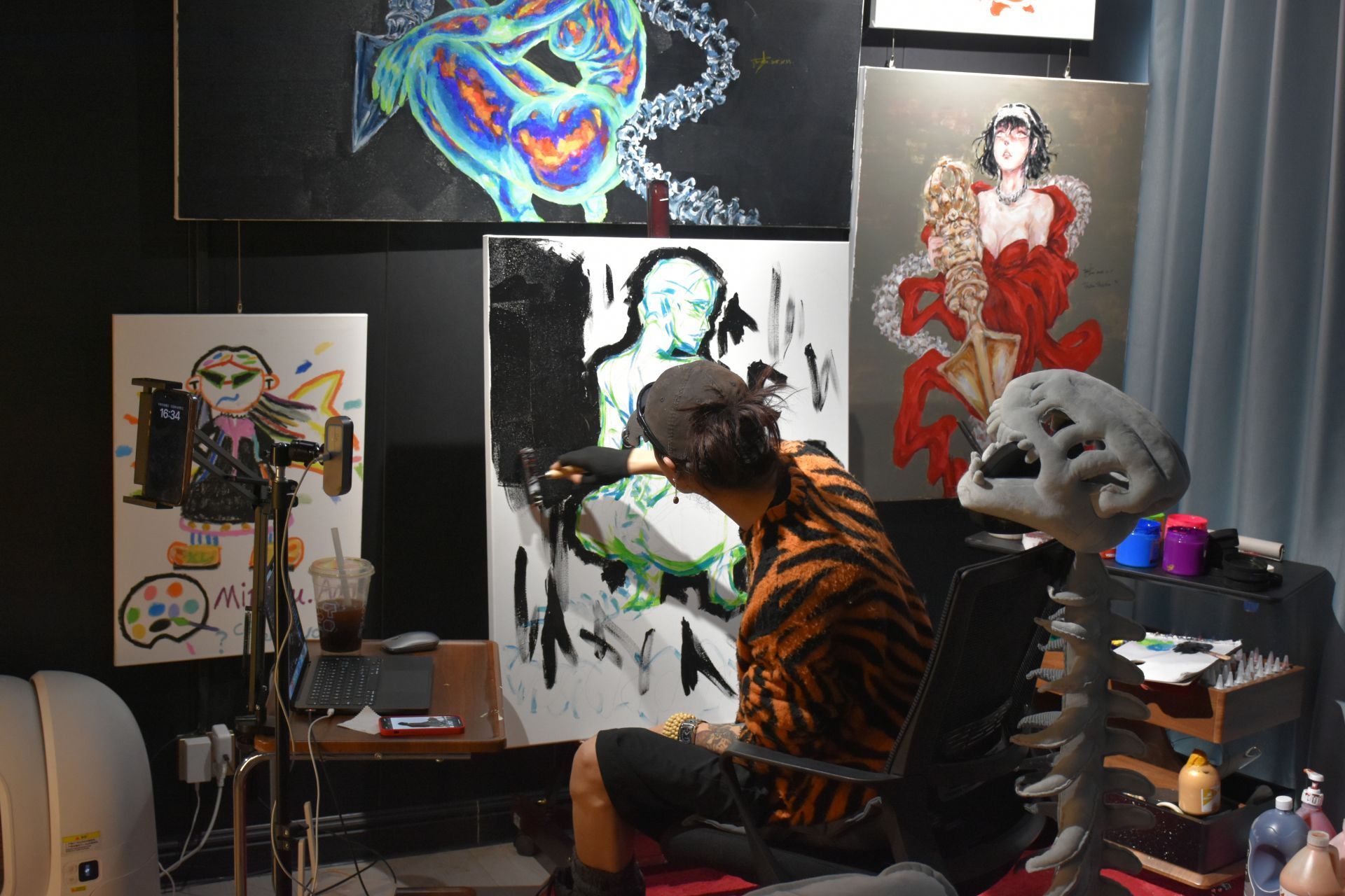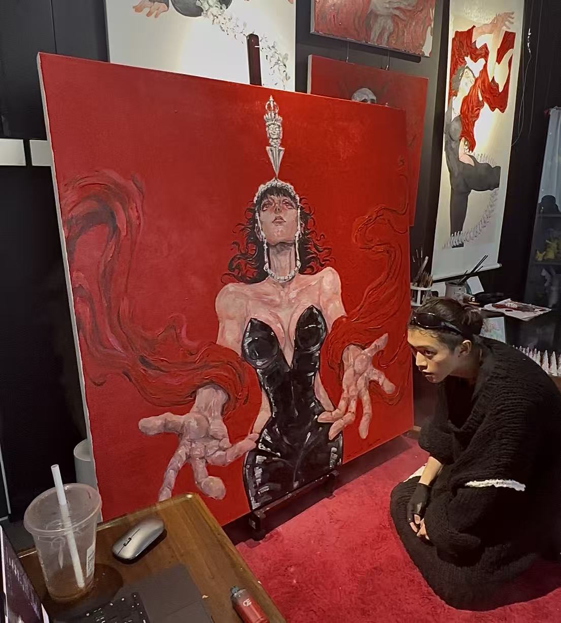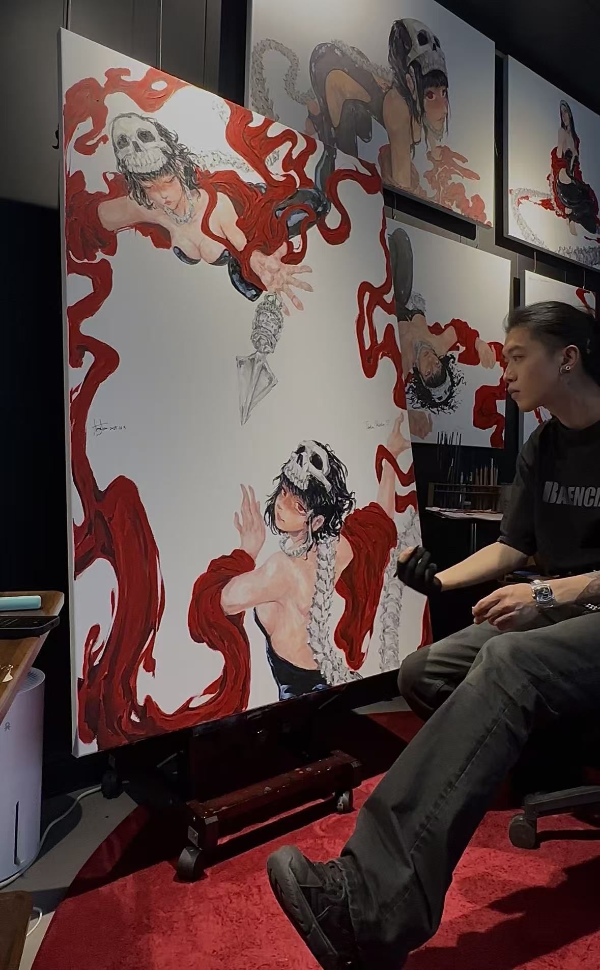 2016年,刘安鹏拖着画板,满怀对艺术求学的向往远赴新加坡留学。2020年疫情突至,他带着电子毕业证书提前回国,一头扎进了快节奏的设计行业与直播浪潮里。“在每天直播和绘画中,我发现很多艺术作品太偏向于快消品,总感觉很多作品缺乏灵魂。”刘安鹏皱起眉,那段日子里,他总觉得手里的画笔“飘着”,没有分量。