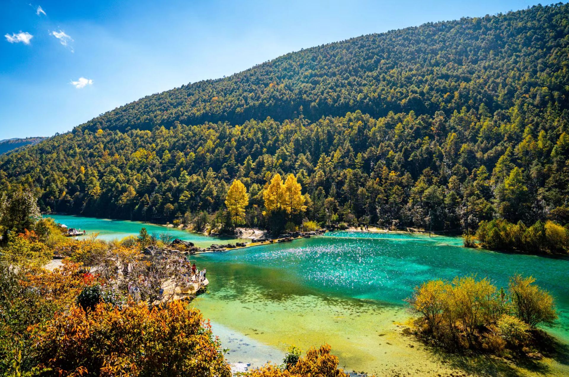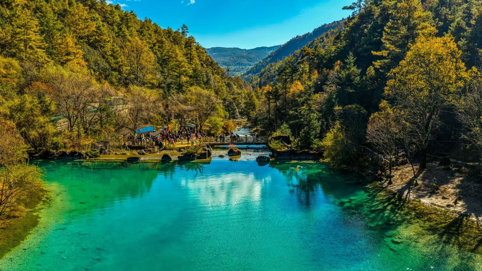 丽江玉龙雪山景区的负责人介绍,蓝月谷和云杉坪之所以迎来“颜值”巅峰,是多重因素共同作用的结果。首先,这是丽江一年中气候最稳定的季节,“天高云淡,空气通透”,强烈的日照使得湖水反射出最纯正的蓝色。其次,玉龙雪山拥有完整的垂直自然带谱,丰富的植被层次在秋季呈现出五彩斑斓的立体景观。