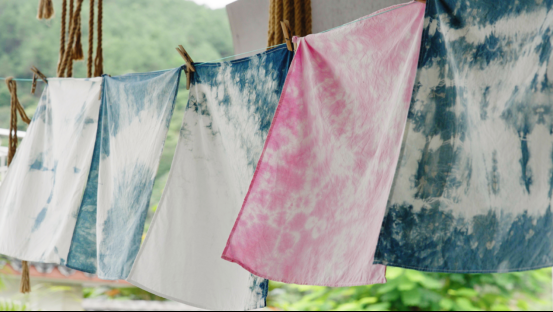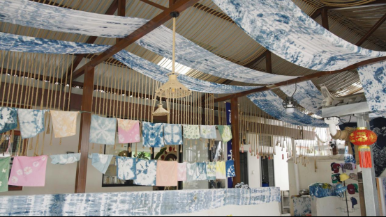 在美丽星村·有风咖谷,创新与传统的融合不仅停留在咖啡与茶的共舞,更在一方棉布上绽放出独特的光彩。有风安宁扎染非遗工坊作为项目多元业态中的重要组成部分,将千年扎染技艺与在地咖啡文化巧妙结合,为游客开启了一段充满惊喜的创意之旅。
