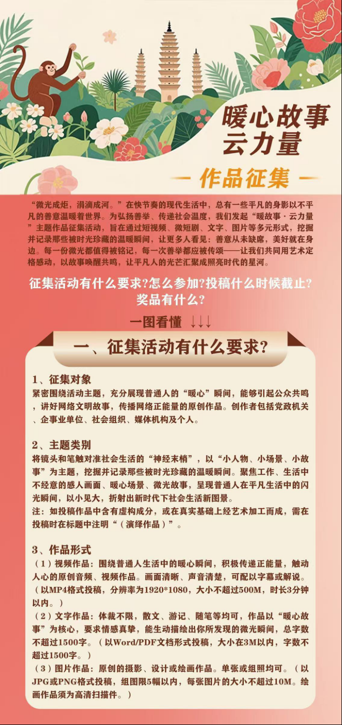 目前,“暖故事·云力量”征集活动已接近尾声,我们诚挚向您发出邀请继续参与“暖故事·云力量”征集活动,让我们一起将这些微光汇聚成璀璨星河。让我们一起,书写这个时代的动人篇章,让温暖成为这个社会最磅礴的力量。