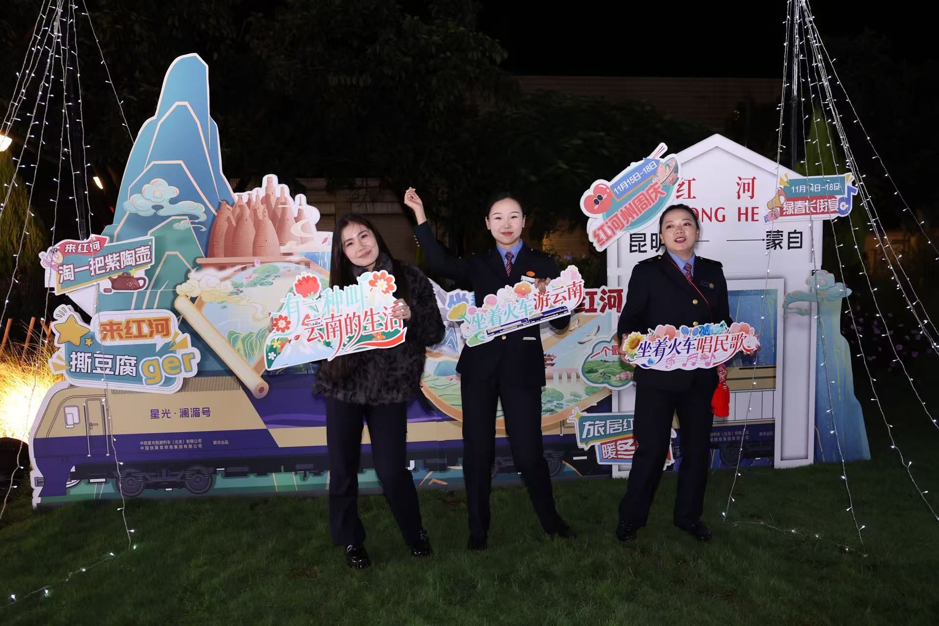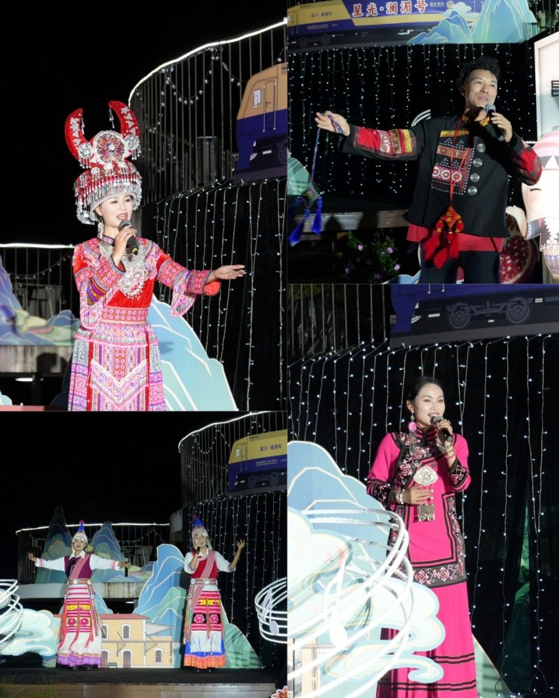 11月18日晚,在云南省蒙自市南湖边,随着红河州民族歌手李怀秀、李怀福唱响民族经典歌曲《金鸟银鸟飞起来》,由云南省文化和旅游厅、中国铁路昆明局集团有限公司(下称“国铁昆明局”)、红河州政府联合举办的“坐着火车唱民歌”文旅主题宣传推广活动在蒙自举行,来自云南各州(市)的数十名歌手,通过“一首民歌、一位歌手、一个推介”的方式,向公众推荐“坐着火车游云南”精品线路和特色旅居目的地。