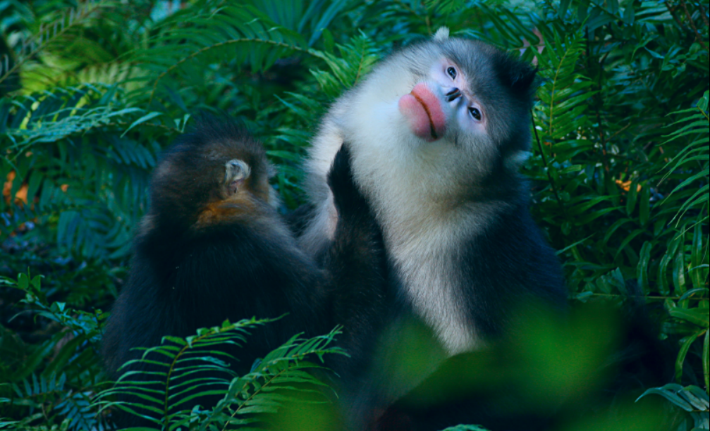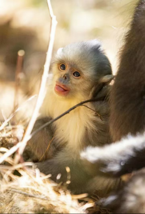 当你踏入公园,最先吸引目光的必定是被誉为“雪山精灵”的滇金丝猴。这些与大熊猫齐名的国宝级精灵,是全球唯一适应高海拔严寒的灵长类动物。它们拥有一张酷似人类的脸,面部白里透红,唇色粉嫩如樱,灰黑色毛发在阳光下泛出独特的光泽,宛如雪域高原的优雅贵族。目前全球滇金丝猴仅存约3800只,而在公园内的响古箐观猴区,每日上午都有专业向导带领游客见证猴群觅食场景。幼崽在枝头嬉戏打闹,成年猴警惕巡视,家族成员间互相梳理毛发的画面,尽显灵长类“社群”的严密秩序。这些与人类和谐共存的精灵,用灵动的姿态诉说着自然演化的奇迹。