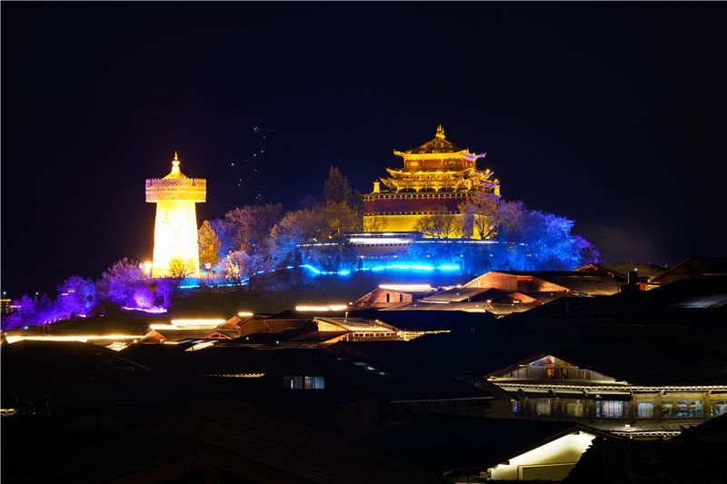 夜登龟山:灯火点亮的古城像撒落的碎钻,远处纳帕海的轮廓在夜色里模糊,只剩星空与鎏金转经筒的嗡鸣。