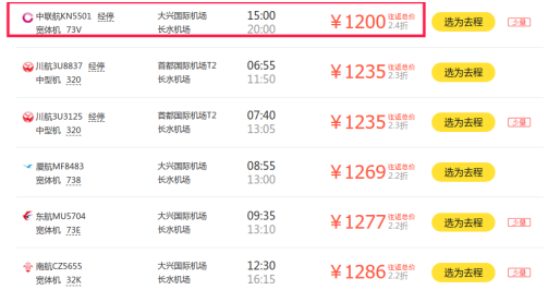 从行程看,北京至昆明出发时查询的往返机票价格最低为1200元。