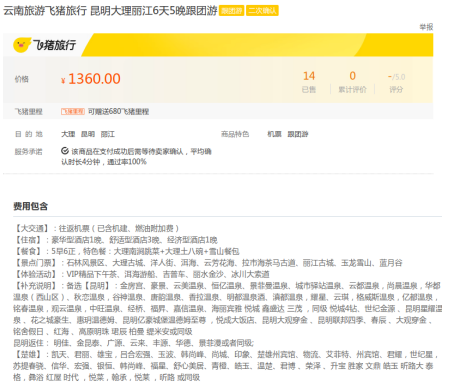 该旅游产品广告链接:云南旅游飞猪旅行 昆明大理丽江6天5晚跟团游