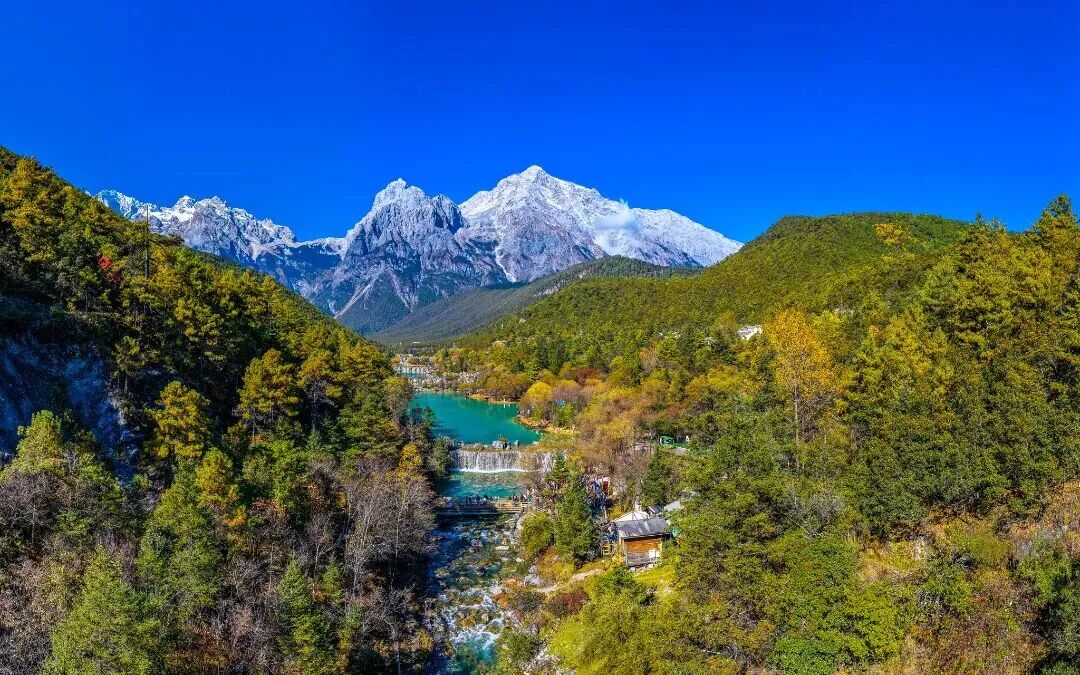 先往玉龙雪山的方向走,云杉坪的风是裹着松针香来的,脚踩在积着软雪的林间栈道上,连呼吸都沾了点清冽的甜;再往牦牛坪去,草甸上的野花还沾着昨夜的雪粒,风一吹,像把星星抖落了半坡;转个弯就是蓝月谷,那汪蓝哪里是水啊,分明是雪山把头顶的蓝天揉碎了,混着融化的雪水,在谷底酿了一整年的玉。