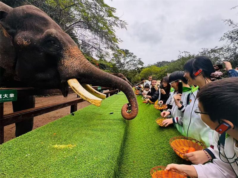 抵达西双版纳,研学活动转入生态与民俗深度体验篇章。走进中国科学院西双版纳热带植物园,学生们在导师的带领下,辨识奇花异草,了解热带植物的独特生存智慧;在北回归线上的热带雨林秘境中,学子们跟随导师徒步探索,辨识望天树、板根植物等珍稀物种,观察老茎生花、绞杀现象等雨林奇观,直观感受生物多样性的奥秘;野象谷内,同学们化身“小小护象员”,向亚洲象投喂食物,学习亚洲象保护知识,理解人与自然和谐共生的重要意义;走进傣族村寨,沉浸式体验傣家生活,全方位感受傣族文化的独特魅力与傣家居民的热情,为研学之旅画上圆满句号。
