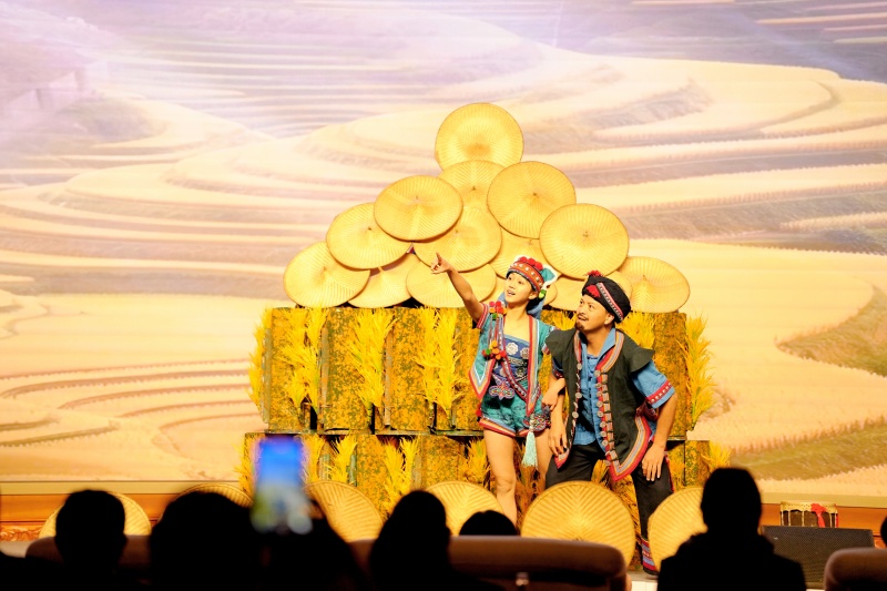 非物质文化遗产不仅承载着民族的记忆,更是历史的活态传承。活动期间,热情洋溢的《阿细跳月》《乐作舞》欢乐开场,昆明瓦猫、楚雄彝族刺绣、文山壮族银饰、普洱帕咔茶、玉溪华宁陶、红河七星虎力散、哈尼刺绣冰箱贴、阿哲刺绣、弥勒竹园红糖、建水青花瓷、泸西苦荞系列产品等众多非遗产品和地方特产、越南特色产品亮相会场,展示了红河流域各地非遗的绚丽多彩,吸引大家驻足观看、了解。值得一提的是,荣获群星奖的红河州原创舞蹈《云上梯田》也在21日上午的红河流域中越合作周开幕式暨红河流域中越地方合作对话会上精彩亮相,演员们用灵动的舞蹈语言,让嘉宾在视觉与听觉的双重享受中,感悟哈尼族“人与自然和谐共生”的古老智慧。