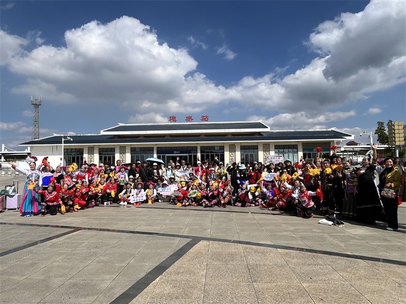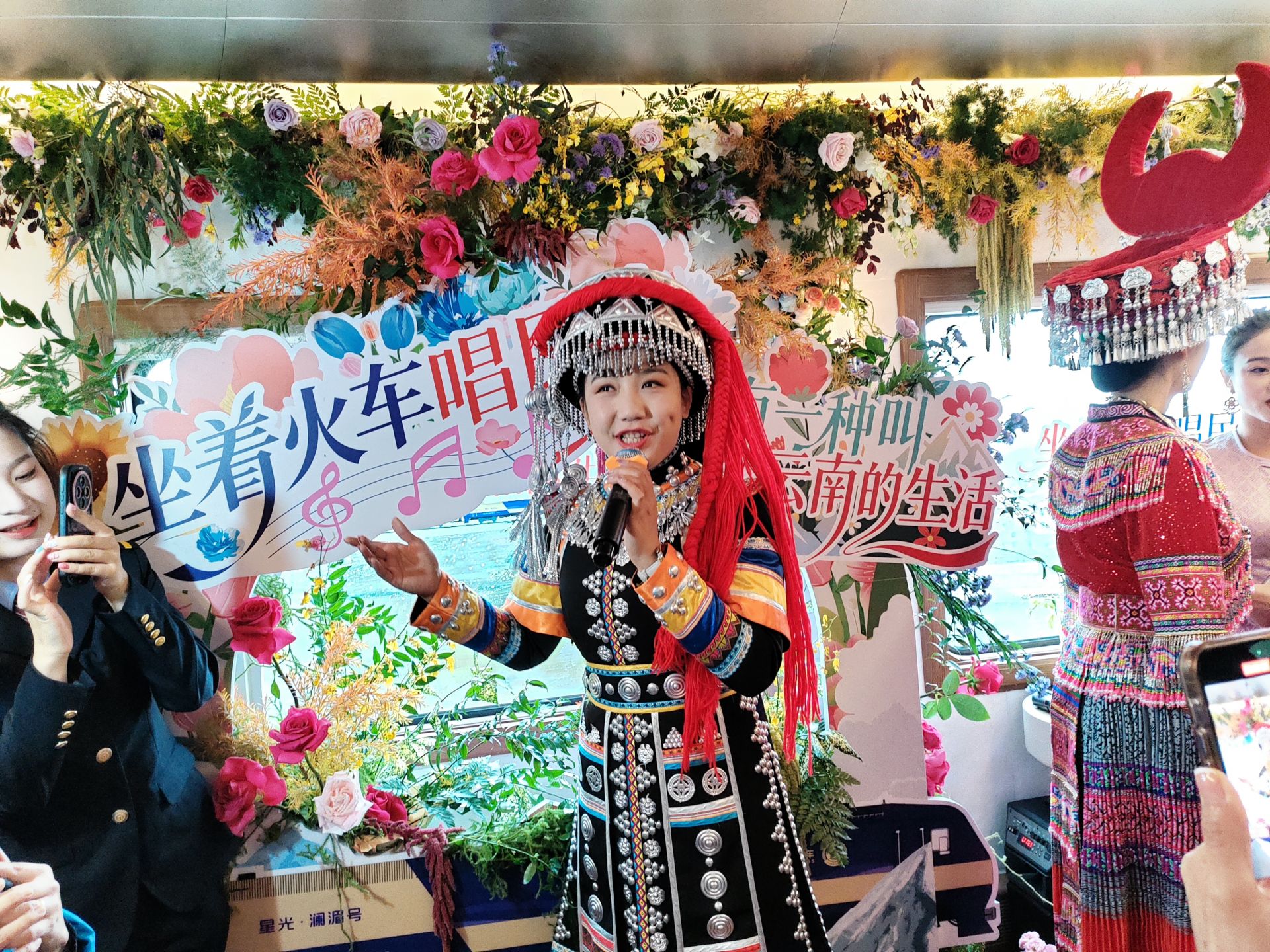 州庆期间,红河州持续推进“文旅+铁路”融合发展模式,将交通线路转化为文化体验廊道,让游客在旅途移步换景中,聆听红河旋律,感受历史与现代的交融。11月18日,由云南省文化和旅游厅、红河州人民政府、国铁昆明局联合开展的“坐着火车唱民歌”文旅主题推广活动,串联起云南省会城市昆明和红河州蒙自市,邀请红河、文山、昆明、西双版纳、玉溪、普洱、大理、楚雄等州(市)的歌手,通过“一首民歌、一位歌手、一个推介”的方式,向公众推荐“坐着火车游云南”精品线路和特色旅居目的地。在西南联大蒙自分校纪念馆、东大街历史文化街区、西南联大先锋书店、碧色寨滇越铁路历史文化公园等地,通过“快闪+文艺演出”相结合的方式,持续拓展“坐着火车游红河”品牌影响力。