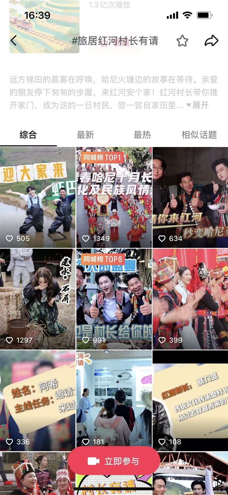 在此期间,“旅居红河·村长有请”绿春站同步举行,活动结合绿春长街宴,以民俗活动为基础,创新性地联动石屏县的蔡力盛老师与绿春县的“支书阿希”两位村长,进行“跨村对谈”,将红河州三千四百年的历史文脉与绿春哈尼族的千年生活智慧巧妙串联。并借助知名网络达人刘熙墨多等人的影响力,通过系列短视频多角度、实时展现活动盛况。话题“村长请你来绿春过长街宴”登顶抖音同城榜TOP1,视频曝光量超百万次。持续叫响了“旅居红河 村长有请”的文旅IP。