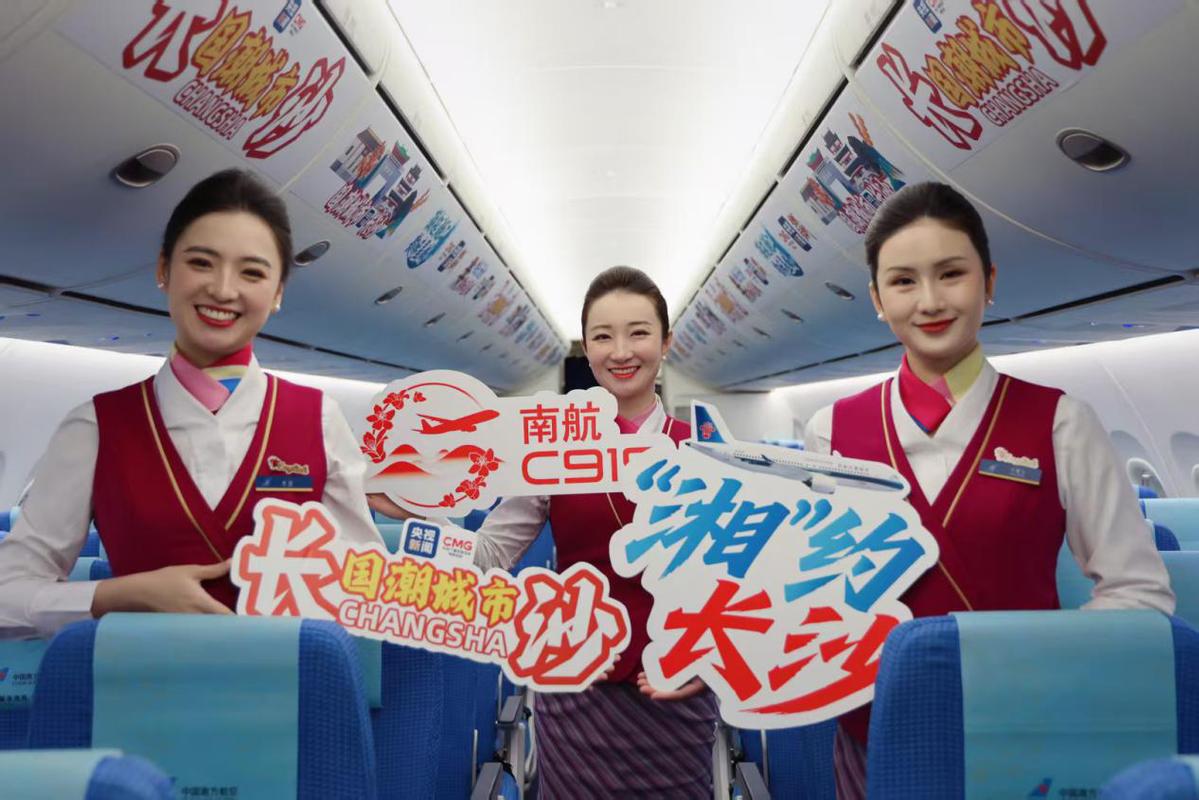 日前,在中央广播电视总台“国潮城市”长沙馆即将开幕之际,南航湖南分公司执飞由北京飞往长沙的“湖湘国潮”主题航班,在万米高空搭起“空中文化客厅”,让旅客在旅途中沉浸式感受湖湘文化的魅力。(来源:中国日报网)