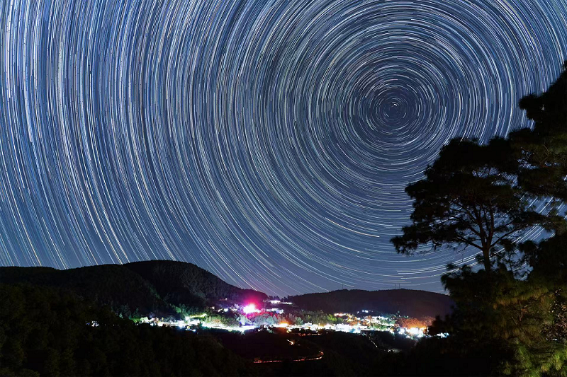 星轨的形成,需得满足严苛的自然条件:洁净无染的空气、极低的光污染、稳定的气象环境,三者缺一不可。而南华恰好集齐了这份“天选优势”——地处滇中腹地,森林覆盖率高,空气质量常年优良,远离城市光污染的干扰,加之山地地形形成的稳定气流,让夜空格外澄澈通透,成为观测和拍摄星轨的绝佳之地,每到夜间,星空便成了这里最耀眼的“主角”。