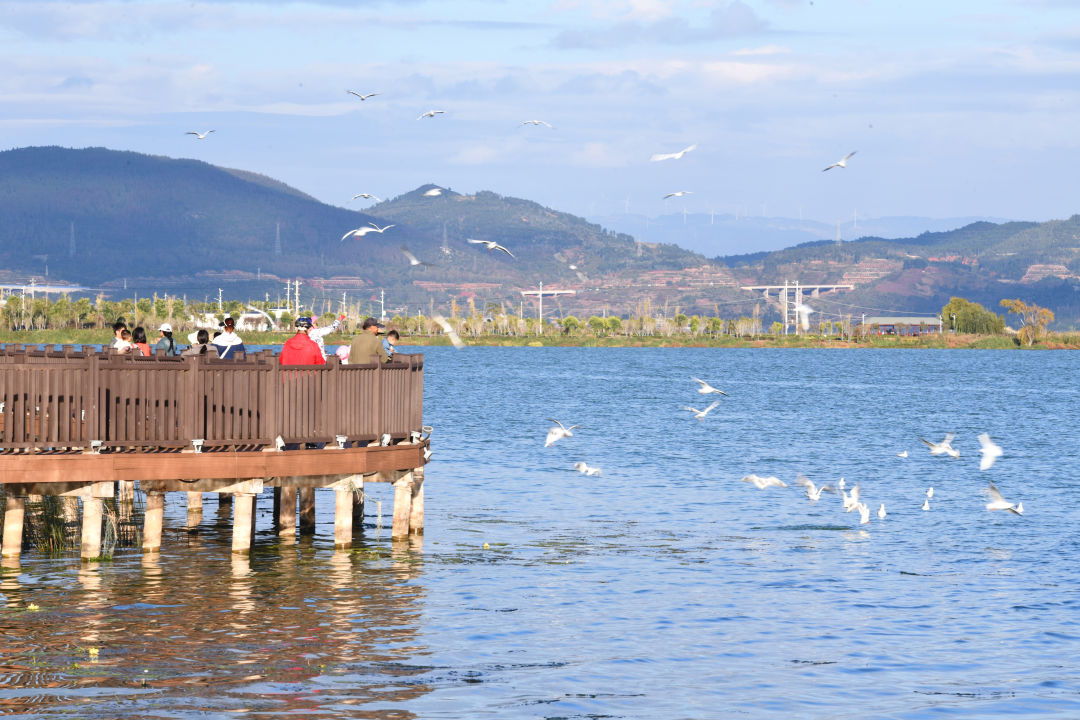 每年冬季,成群的海鸥如约飞临玉溪抚仙湖、星云湖、杞麓湖等多个湖泊湿地,成为一道灵动的风景线。与这些冬日精灵亲密互动,感受人与自然和谐共处的美好。
