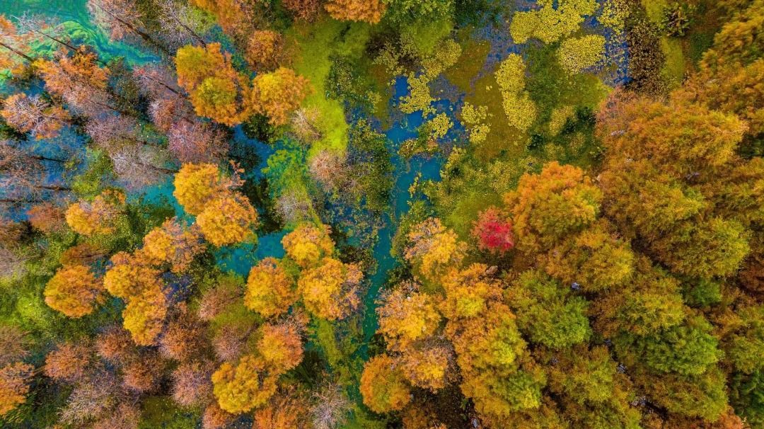 星云湖畔的水杉林在冬季焕发出绚烂色彩,橙红与碧水相映成趣,漫步其间,仿佛置身油画世界,是摄影与静心的理想场所。