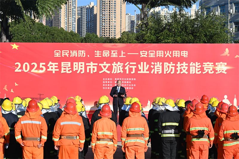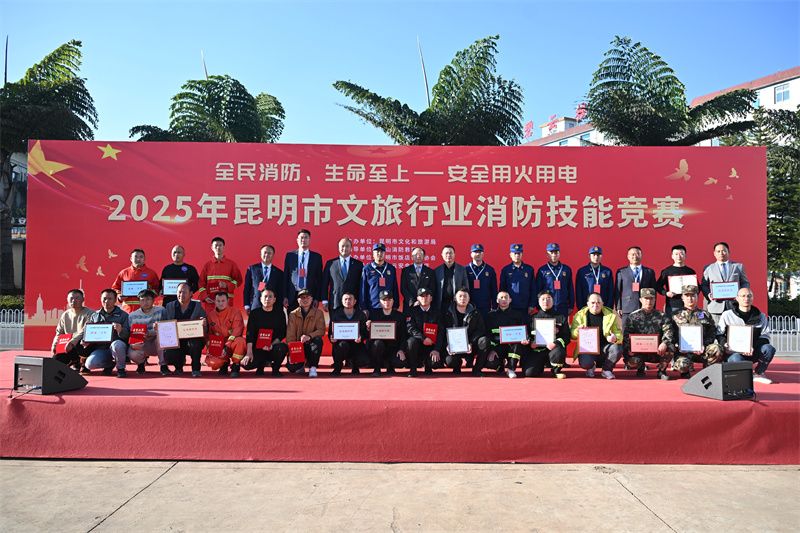 11月28日,2025年昆明市文旅行业消防技能竞赛在昆明云安会都酒店举行。本次竞赛以“119”消防宣传月为契机,旨在通过消防技能大比武达到以赛促训、提高认识的目标,全面检验和提升昆明市文旅行业的消防应急处置能力,为昆明文旅产业的高质量发展筑牢安全防线。