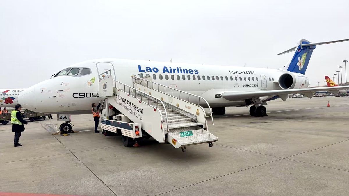 近日,由老挝航空执飞、搭载55名旅客的C909国产飞机从老挝万象起飞,平稳降落抵达昆明长水国际机场,这是外国航空公司首次使用国产飞机执飞昆明航线,标志着国产飞机执飞国际航线在云南正式开通,迈出中国制造民用飞机拓展国际市场的重要一步。(来源:中国日报网)