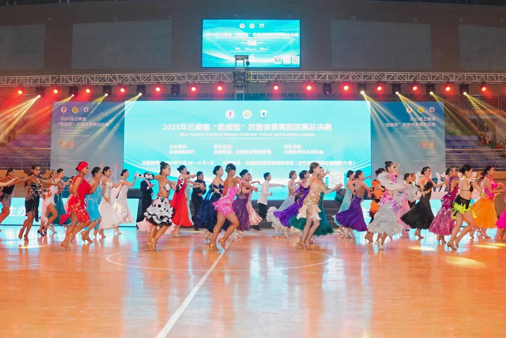 11月29日,2025年云南省“勤锻炼”校园体育舞蹈联赛总决赛在云南经济管理学院安宁校区体育馆火热开赛。此次赛事由云南省教育厅主办,昆明学院、云南经济管理学院承办,云南省学生体育协会协办,来自云南省16个州市、209个参赛单位的2500余名选手齐聚一堂,展开激烈角逐。