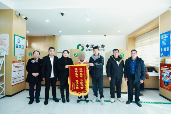 11月27日,唐先生携家人手持一面印着“服务真诚,尽职尽责,理赔迅速,值得信赖”的锦旗,专程前往中国人寿泸西县支公司将锦旗送到工作人员手中,以此表达该公司在其父亲出险后提供的高效理赔服务。