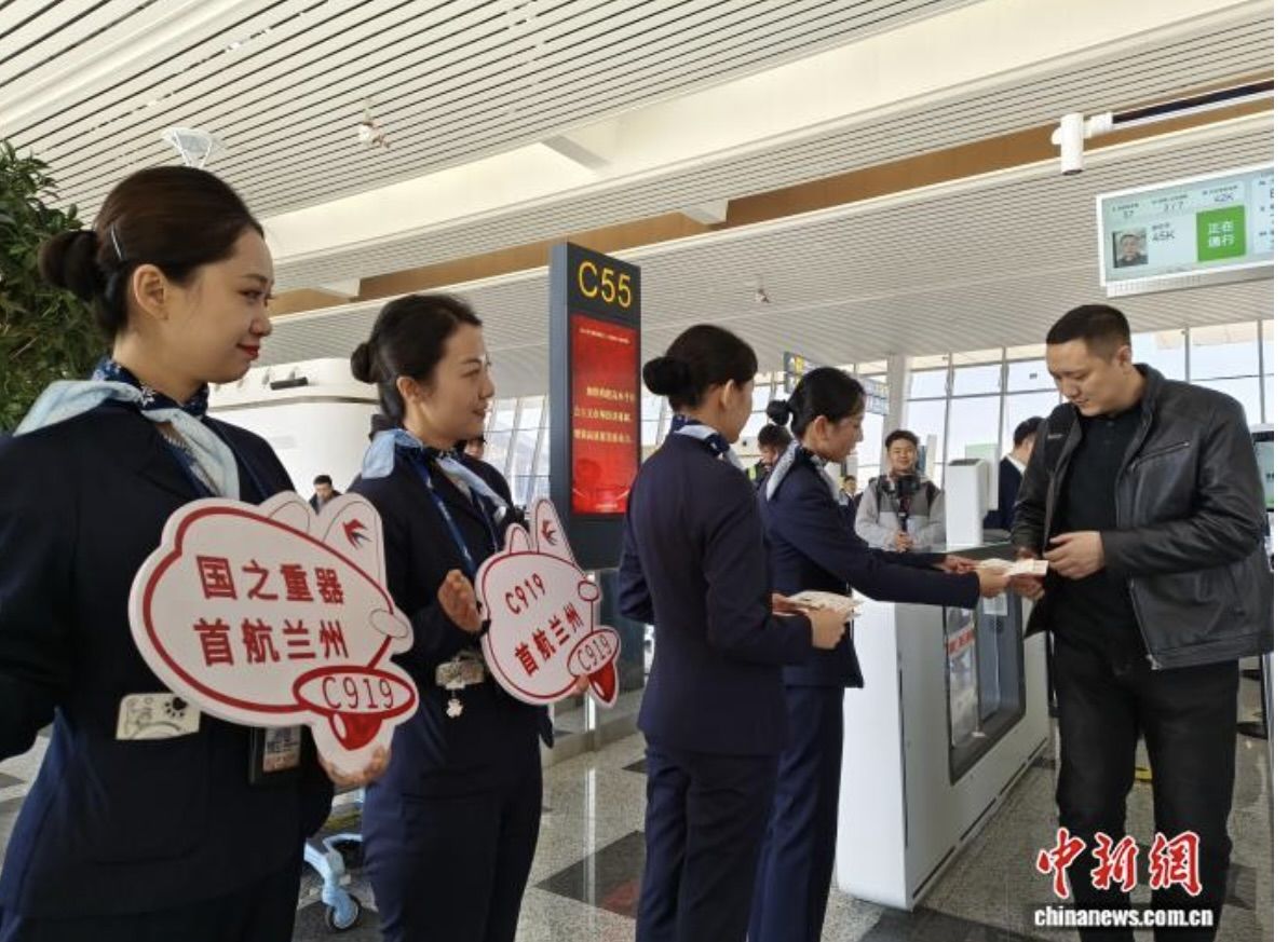 12月1日11时08分,东航MU9179航班平稳降落在海拔1948.7米(6394英尺)的兰州中川国际机场,标志着国产大型客机C919正式开启上海至兰州的定期商业航班运营。这是东航首次使用国产大型客机C919执飞高原机场。(来源:中国新闻网)