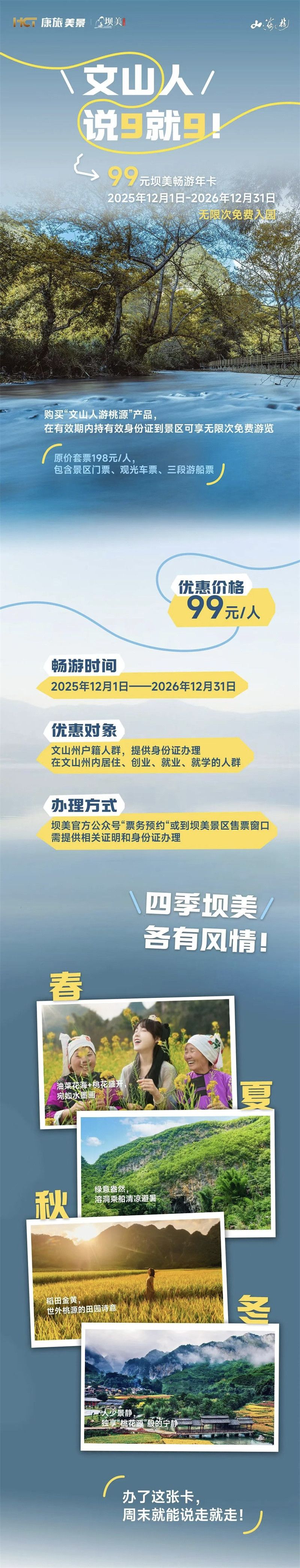 文山人必囤坝美99元通行证来了!从今天开始,396天无限次畅游世外桃源!
