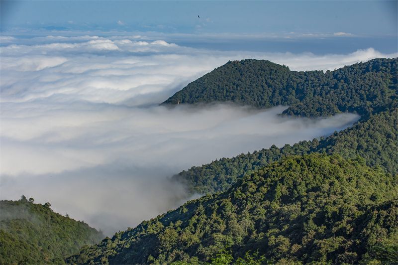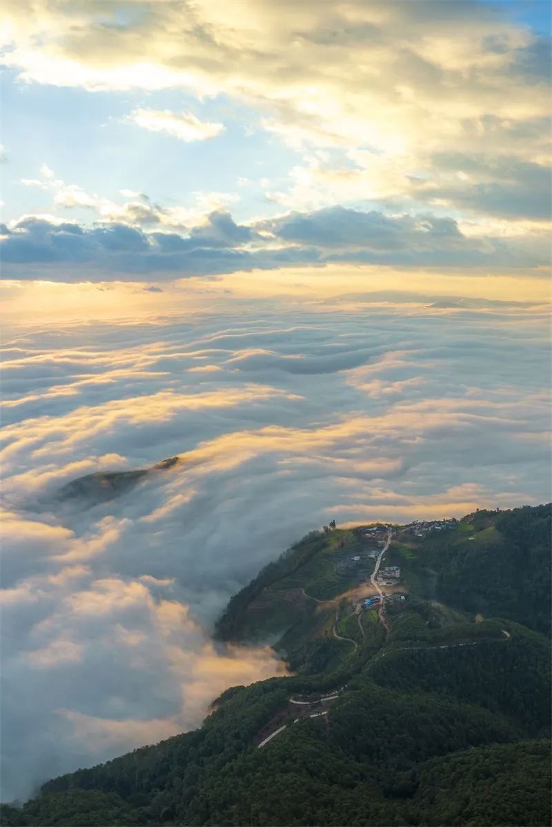 山谷被慢慢升腾起来的云雾弥漫着,如烟的云海伴着黛色的山峦,映入眼帘的便是一幅“云以山为体,山以云为衣”的绝美画作。