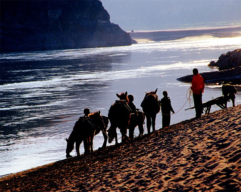 金沙江两岸风光秀美,是游客冬季向往的旅游胜地。冬春时节水位下降,大小不一的江中小洲露出水面,小洲上有奇形怪状、精巧美观的鹅卵石,平坦的沙滩可以让游客搭帐篷露营。