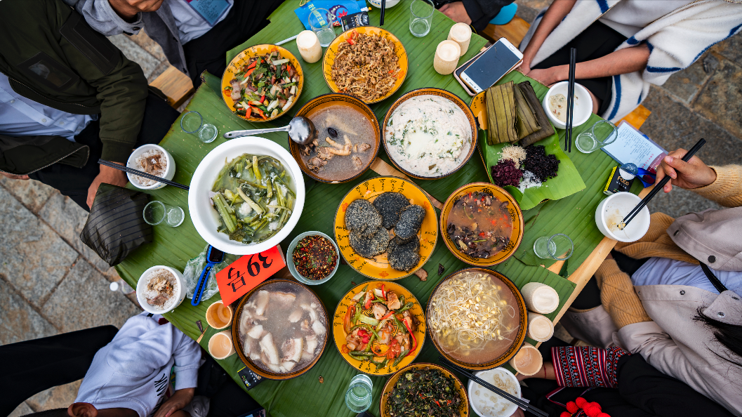 这场承载着瑶族千年历史记忆的宴席,每一道菜都是瑶族人民的智慧结晶——醇厚的瑶家米酒、喷香的瑶家大粽粑、鲜美的野菜,让你在味蕾的享受中读懂瑶族文化。