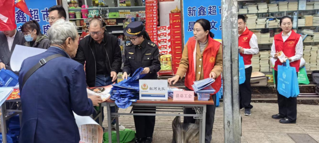 放眼全州,各级工会同步开展了内容丰富、各具特色的普法活动。绿春县总工会创新采用“普法小摊”、法治墙打卡、有奖竞答、反诈知识抢答与套圈等趣味形式,吸引职工群众广泛参与。工会志愿者重点解读了劳动合同、工资支付、社保、劳动争议及婚姻家庭、财产权益、禁毒防艾、防范诈骗等法律知识,发放各类宣传资料300余份。蒙自市总工会在南湖休闲广场开展集中宣传,发放《中华人民共和国宪法》《中华人民共和国民法典》《中华人民共和国工会法》等资料300余份,提供咨询40余人次。泸西县总工会在苔地公园法治文化广场开展宣传活动,发放资料600余份,覆盖职工群众300余人,并通过典型案例讲解,拉近了宪法与职工日常生活的距离。红河县总工会通过悬挂宣传横幅、发放宣传资料、现场答疑解惑等方式,向职工群众面对面普及法律法规,共计发放宣传资料200余份,接受职工群众法律咨询20余人次,逐渐形成“办事依法、遇事找法、解决问题用法、化解矛盾靠法”的良好氛围。