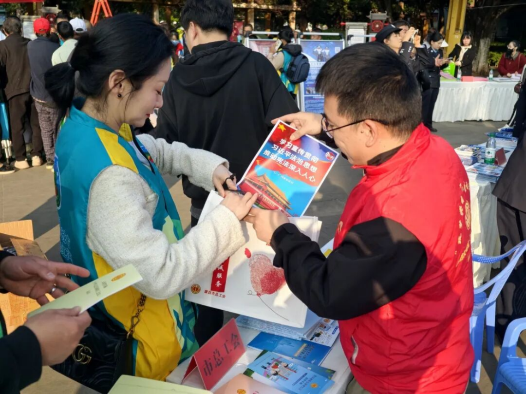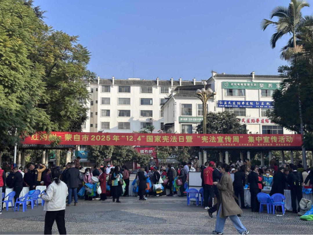 12月4日,红河州“宪法宣传周”集中宣传活动在蒙自市南湖法制广场正式启动。红河州总工会积极响应、精心组织,广泛开展形式多样的宪法及劳动法律法规宣传活动,大力弘扬宪法精神,推动社会主义法治文化深入职工群众、融入生产生活。