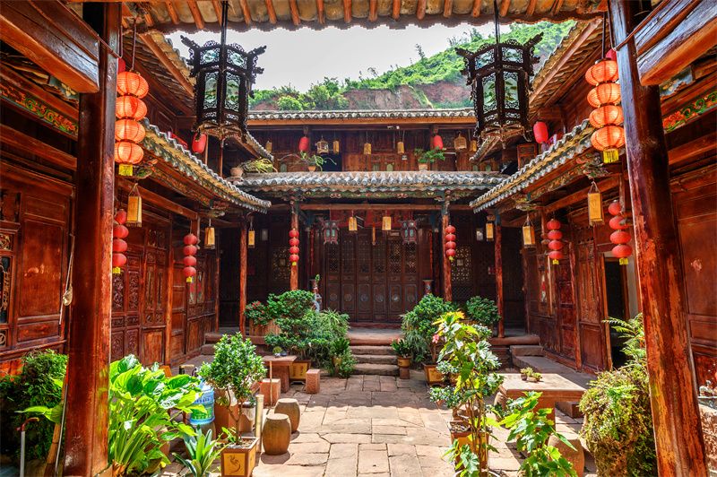 一套套四合大院的房门、窗柱、翘檐、回廊上都雕龙刻凤,精雕细琢,优雅别致。来到这里,漫步在幽静的古巷,看看那些古老的建筑,感受这座偏远小镇的马帮文化和别样风情。